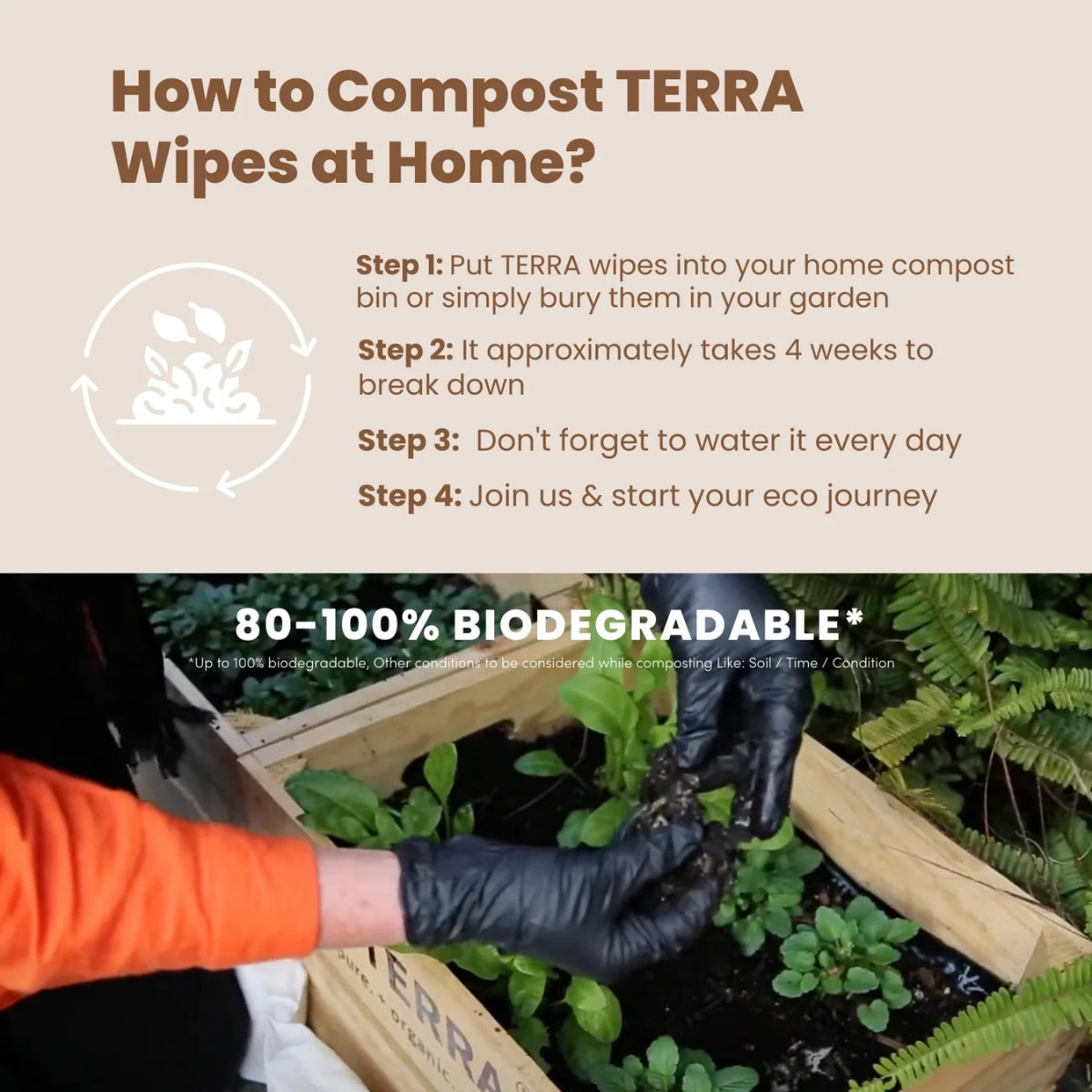TERRA Dry Baby Wipes are made from 100% biodegradable bamboo fibre, offering ultra-soft, thick, and highly absorbent care for delicate skin. Free from chemicals, dyes, and preservatives, these dermatologist-safe wipes provide gentle cleansing and natural antibacterial protection. Ideal for newborns and multipurpose use, they deliver pure, soothing care with every wipe.