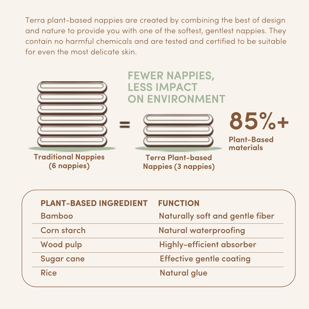 TERRA Junior Nappies are thoughtfully designed to give your growing child the freedom to move with confidence. With advanced absorbency, breathable comfort, and a secure fit, they're perfect for active days and peaceful nights. Made with safe, plant-based materials and dermatologically tested for sensitive skin, they care for your child with the same gentle promise of TERRA.